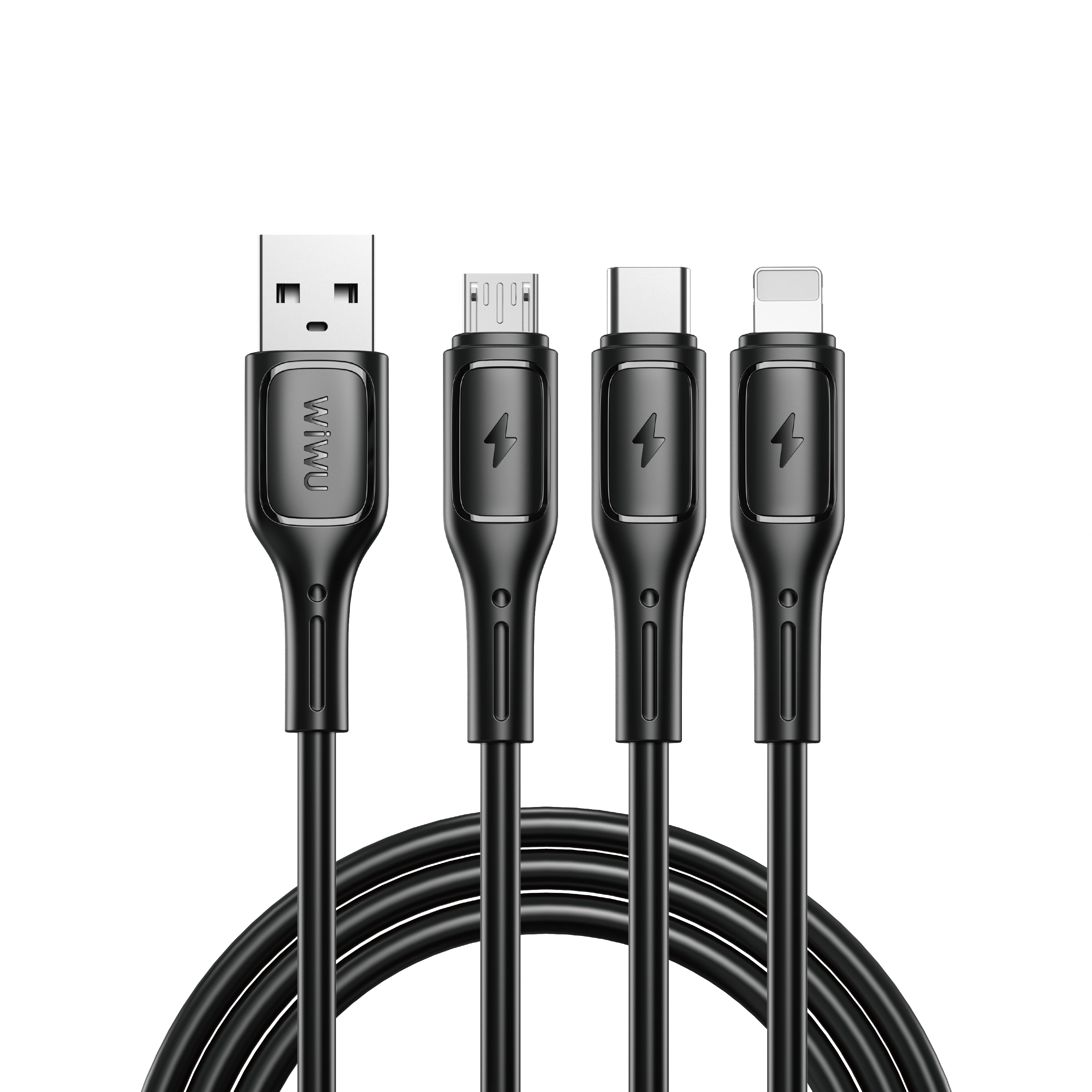 WIWU Starlink USB-A to Micro+USB-C+iP Cable Black |